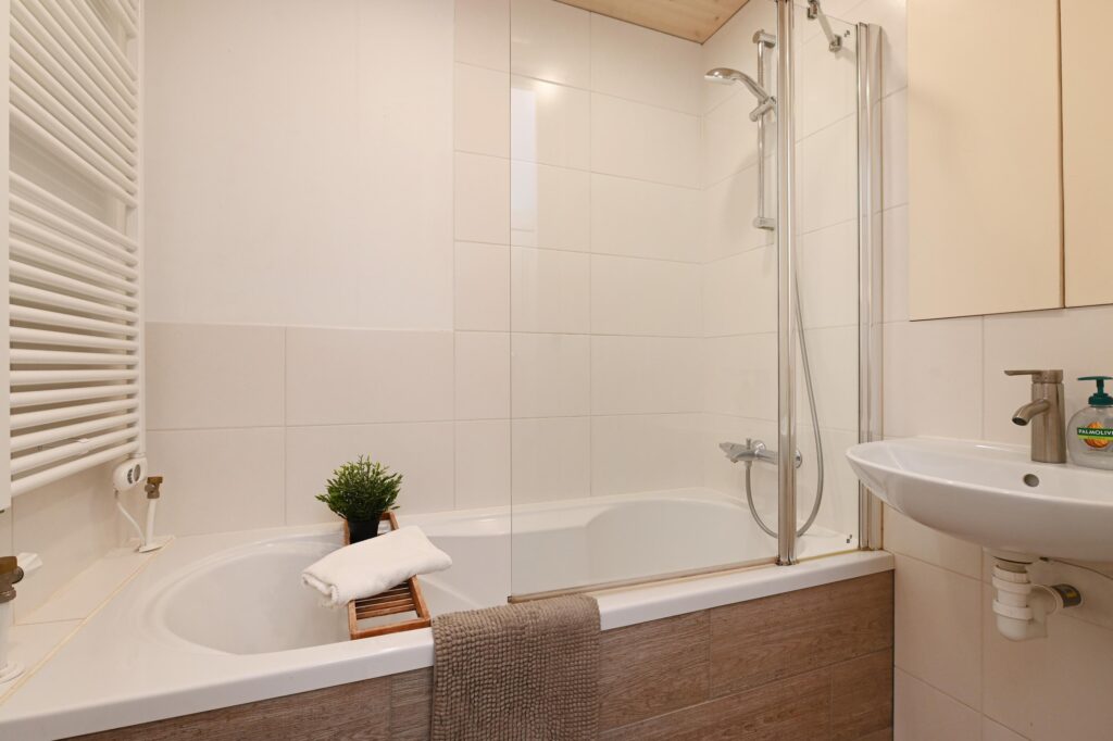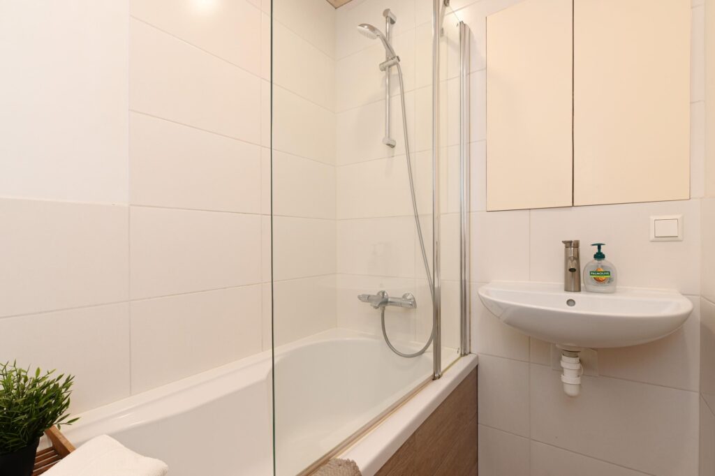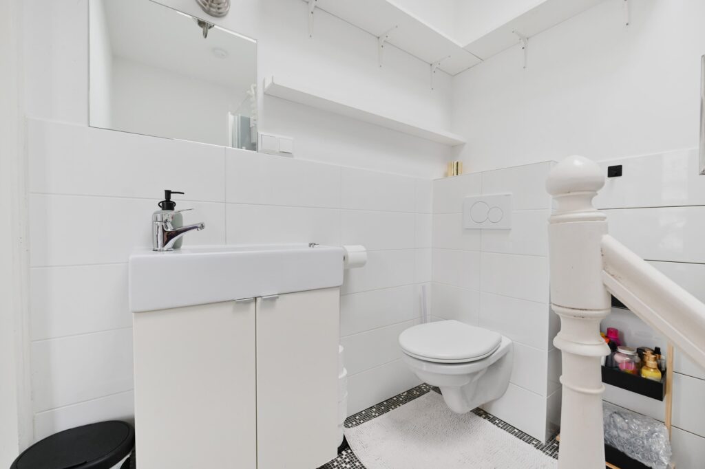 Hier bevindt zich een tweede badkamer met douche, wastafel en toilet. Daarnaast is er een slaapkamer met airconditioning. Het elektrisch bedienbare dakraam zorgt voor extra licht en goede ventilatie.