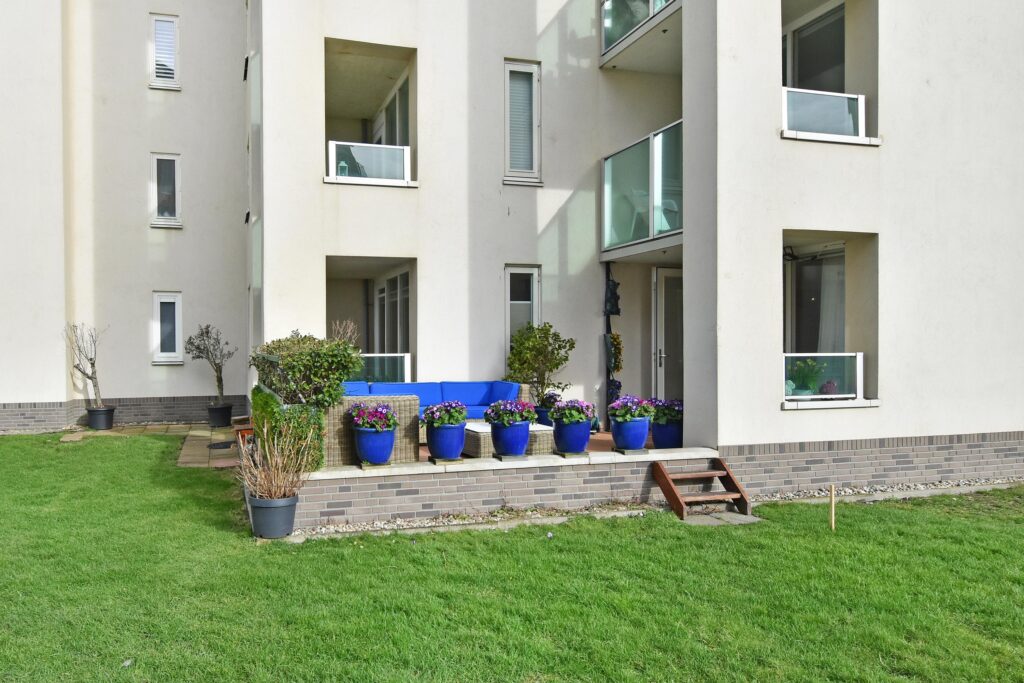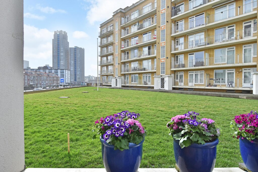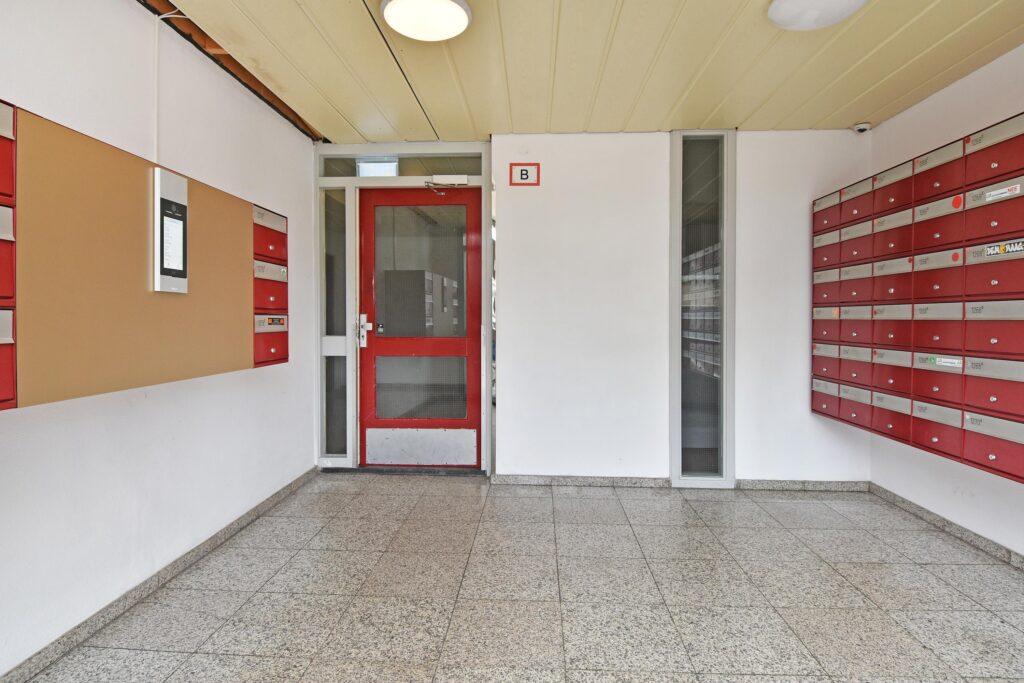 Via een kleine trap bereikt u het afgesloten portiek, voorzien van een nieuw videofoonsysteem en brievenbustableau. Met de trap of lift gaat u naar de eerste verdieping, waar zich de galerij en de entree van de woning bevinden.