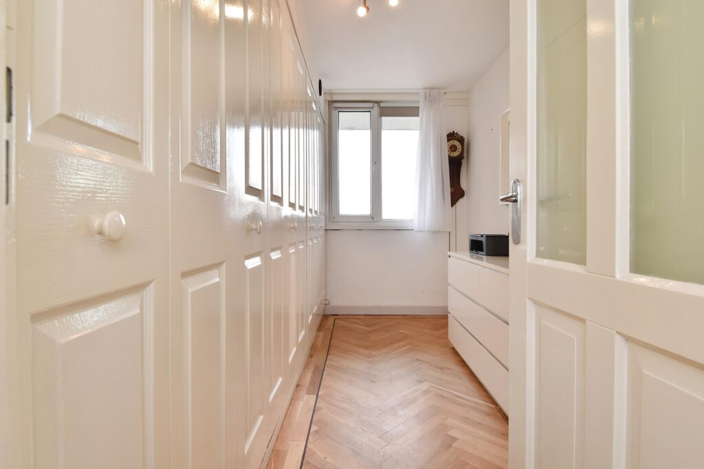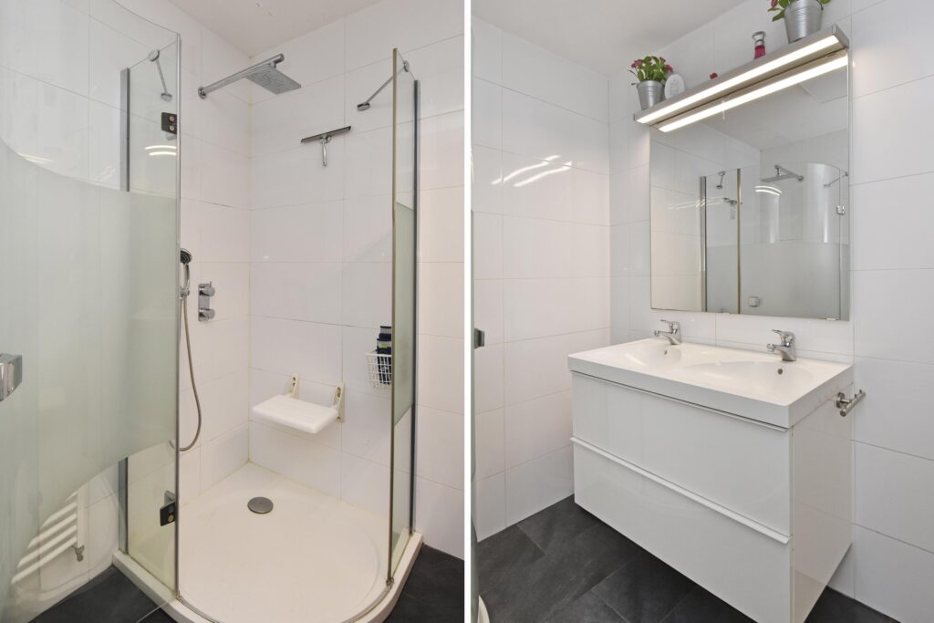 In de hal bevindt zich een kast met de elektrische boiler en een kast met met de wasmachineaansluiting. De woning beschikt over twee slaapkamers, waarvan één met een ingebouwde kast. Ruime badkamer met wastafelmeubel, douche en toilet.