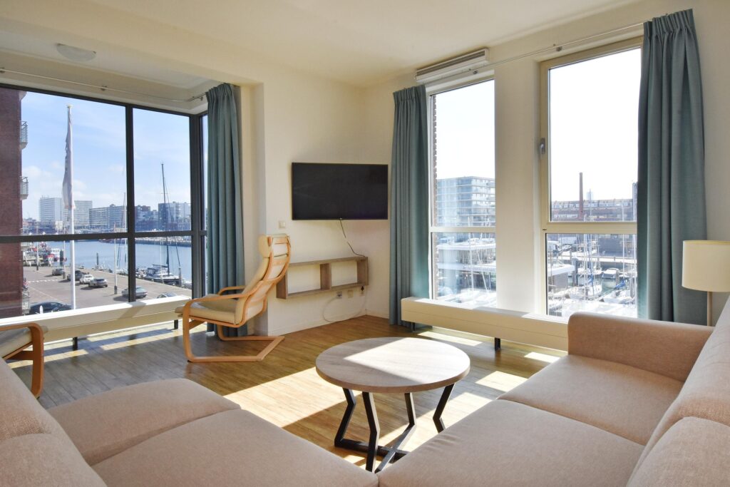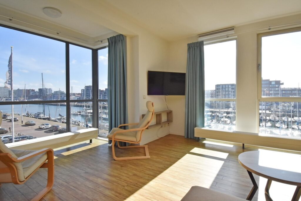 De woning ligt aan de haven van Scheveningen en heeft zowel zeezicht als geweldig uitzicht over de haven.
