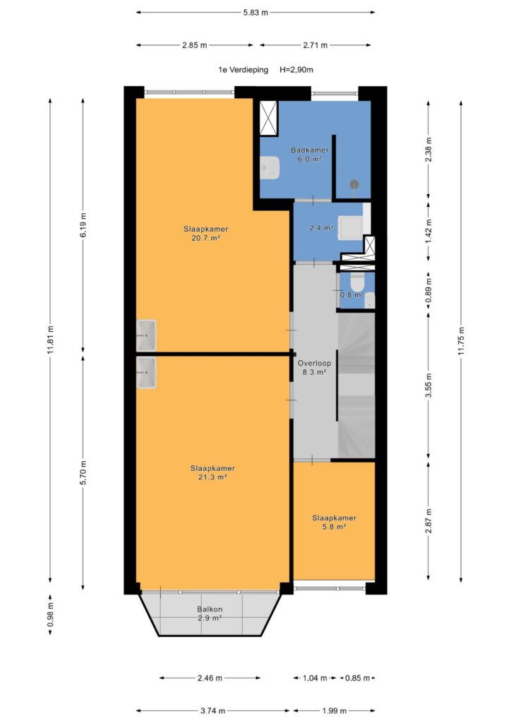 De woning heeft verder een 1e en 2e verdieping, elk met hun eigen badkamer en slaapkamers. Op de eerste verdieping zijn drie slaapkamers, en op de tweede verdieping nog eens twee. Dit biedt veel ruimte en mogelijkheden voor grote gezinnen.